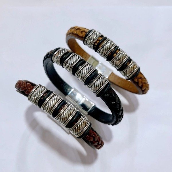 Pulsera 4 Dijes Simil Cuero Cierre Magnetico BL