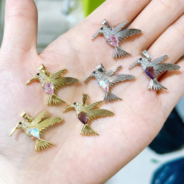 Dije Colibri de Acero Dorado x3 Unidades BL