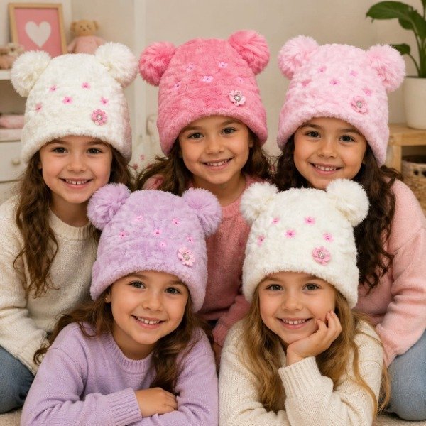 Gorro Infantil Orejitas y Florcitas CC