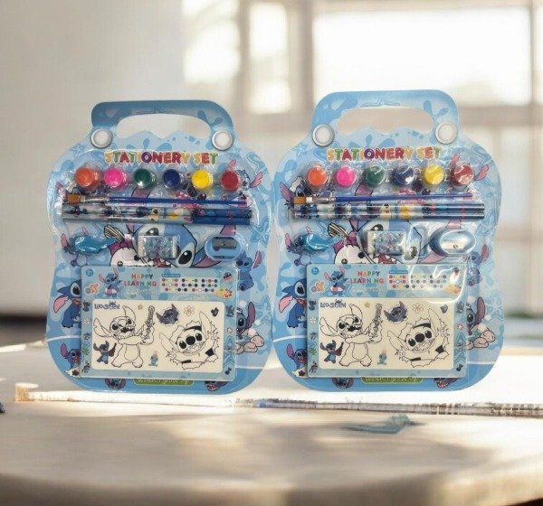Hermoso set de papelería infantil con diseño de Stitch, ideal para incentivar la creatividad y el aprendizaje de los más chicos. Viene presentado en un práctico estuche tipo maletín, fácil de transportar y perfecto para regalar.